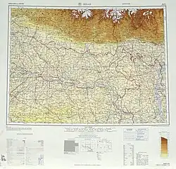 Historical maps of the border area from west to east in the International Map of the World and Operational Navigation Chart, mid-late 20th century: