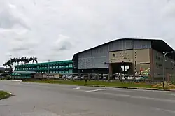During the early days, there were only footpaths in the town. After that, local people dig up drains along the footpath.[1][note 23] Water was popular form of transport when there were no proper roads in Bintangor. Taking express boats between Sibu and Sarikei was four hours, meanwhile, it only takes one and a half-hour to reach Bintangor from Sarikei.[1][note 24] The express boats carries passengers, rubber sheets, baskets of fresh fruits, and other agricultural products to Sibu while bringing canned food, beer, bottled drinks, and other sundry goods back to Bintangor.[3] The once busy Bintangor wharf became irrelevant after road connections become more advanced in the 1980s.[6] There are several bridges in Bintangor: Nyelong bridge and the Red Bridge.[3] It takes 35 minutes to drive from Sibu to Bintangor through the Lanang Bridge.[3]