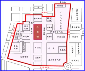 - ↑ 臺北市博愛警備管制區範圍示意圖 (PDF) (in Chinese). Archived (PDF) from the original on 2021-10-08. Retrieved 2021-10-08 – via laws.taipei.gov.tw.