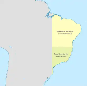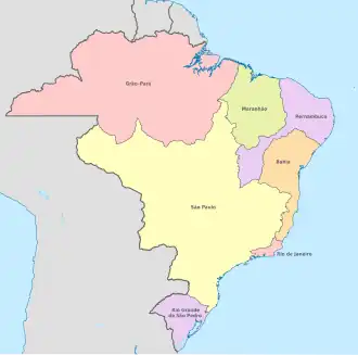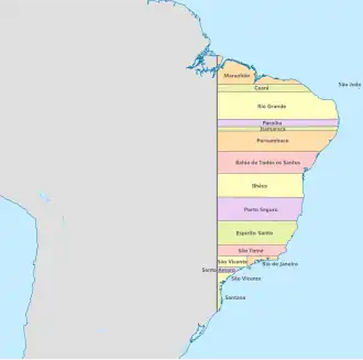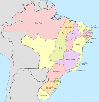 ![]() Brazil in 1534: Western border defined by the 49th meridian west |