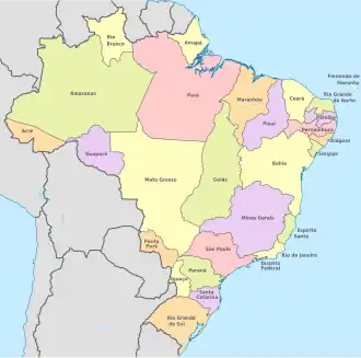 ![]() Brazil in 1889: lost the province of Cisplatina (which became Uruguay) and enlarged the State of Amazonas |