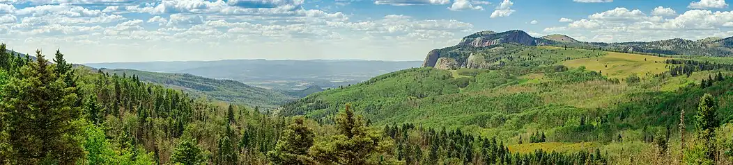 The Brazos Mountains is a range in far northern Rio Arriba County, in northern New Mexico in the southwestern United States. The range is part of the Tusas Mountains (the southern portion of the San Juan Mountains), which extended slightly into Colorado. A high crest runs from the border with Colorado for over 20 miles (32 km) in a south-southeasterly direction. The high point of the range at 11,405 feet (3,476 m) is on Grouse Mesa,[1] at the Brazos Benchmark.[2] Two miles (3 km) to the southeast is the more distinctive Brazos Peak, at 11,288 feet (3440 m).