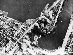 Brittany lost 240,000 men during the First World War.[40] The Second World War was also catastrophic for the region. It was invaded by Nazi Germany in 1940 and freed after Operation Cobra in August 1944. However, the areas around Saint-Nazaire and Lorient only surrendered on 10 and 11 May 1945, several days after the German capitulation. The two port towns had been virtually destroyed by Allied air raids, like Brest and Saint-Malo, and other towns, such as Nantes and Rennes, had also suffered.
