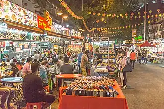 Alor Street, or Jalan Alor in Malay, is an entire street dedicated to cheap hawker food of mainly local Chinese cuisines. Located within walking proximity of Bintang Walk, it is popular among the locals for offering food served in a traditional open-air atmosphere, with chairs and tables dotting the curbs and road-sides. This is a place burgeoning with activity both during night and day. While some hawkers erect stalls along curbs, others operate food stalls from utilitarian restaurants. The food served in local hawker stalls is generally cleaner than in Indonesia. For local and foreign Muslim, most of the stalls are non-halal which served pork, frog and beer.