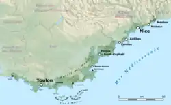 - ↑ "La Côte d'Azur : ça commence et s'arrête où ?". France 3 Provence-Alpes-Côte d'Azur (in French). 8 May 2022. Archived from the original on 26 July 2023. Retrieved 26 July 2023.