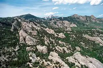 ![]() Cache Peak at center in background and the City of Rocks National Reserve | |