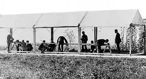From 1910, the astronomical clocks of the Paris Observatory sent the time to sea daily through the Eiffel Tower within a radius of 5 000 km.[89] The development of wireless telegraphy allowed unifying Universal Time.[90] On 9 March 1911, France adopted Greenwich Mean Time by law. However, the law did not refer to Greenwich Prime Meridian, but to the local mean time of Paris delayed by 9 minutes and 21 seconds.[91] In 1912, following a report by Gustave Ferrié, the Bureau des Longitudes organized at the Paris Observatory a Conférence internationale de l'heure radiotélégraphique (International Radiotelegraph Time Conference). The International Time Bureau was created and installed in the premises of the Paris Observatory. However, due to World War I, the International Convention was never ratified.[90] In 1919, the existence of the International Time Bureau was formalized under the authority of an International Time Commission, under the aegis of the International Astronomical Union, created by Benjamin Baillaud.[89] The International Time Bureau was dissolved in 1987 and its tasks were divided between the International Bureau of Weights and Measures and the International Earth Rotation and Reference Systems Service (IERS).[90][92]
