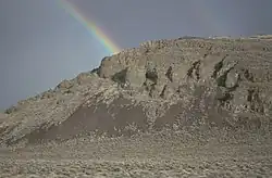 The Catlow Valley is bounded by Hart Mountain on the west and Steens Mountain on the east, and Beatys Butte is southwest of the valley. Warner Peak is the highest point on Hart Mountain. The summit of Warner Peak is 8,012 feet (2,442 m) above sea level.[4] From the crest of the Hart Mountain, the land slopes gently down to the floor of the valley.[5] Steens Mountain's western boundary is Catlow Rim. The rim runs along the east side of Catlow Valley from north to south. At the north end of the valley, the rim begins as gentle rolling hills. The rim gets steeper and high as it runs south. At the south end of the valley, Catlow Rim has a cliff face that rises more than a 1,000 feet (300 m) above the valley floor.[6][7] Beatys Butte is a stand-alone peak southwest of Catlow Valley. Its summit is 7,918 feet (2,413 m) above sea level, which gives it a 3,400-foot (1,000 m) prominence above the valley floor.[8]