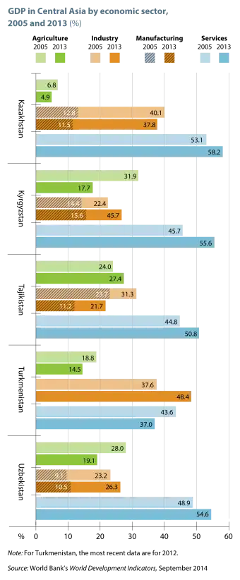 - ↑ "FDI to Central Asia Reached 378.2 billion Over Past 13 years". The Astana Times. 9 December 2020. Archived from the original on 11 December 2020. Retrieved 10 December 2020.