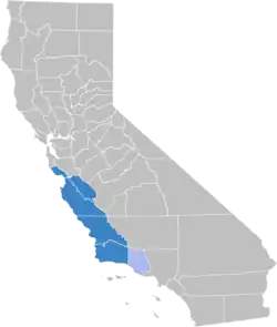 ![]() Location of the Central Coast in California (The lighter shaded area includes South Coast counties that are included in some definitions) | |