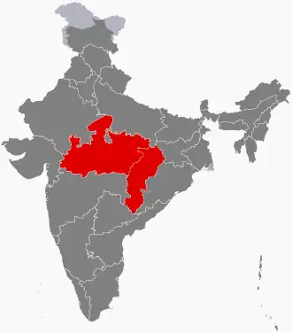 Another definition, which treats the Deccan as a different unit, defines "Central India" as Madhya Pradesh and "eastern and central Uttar Pradesh".[4] "Madhya Pradesh" means "central province", while "Uttar Pradesh" means "northern province", though when adopted in 1950 it had the advantage of preserving the common "UP" abbreviation for what was formerly the United Provinces of Agra and Oudh. This definition is rather similar to the territories, all princely states, grouped by the British Raj in 1854 as the Central India Agency (not to be confused with the Central Provinces, bordering this to the south).