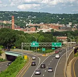 Interstate 84 and Route 8 serve as the primary highways in the region. Interstate 84 links the region with Hartford, and Boston to the east and Danbury, and New York State to the west. Route 8 is the major north-south highway in the region and connects with Torrington, and the Litchfield Hills to the north, and to the Lower Naugatuck Valley and Bridgeport to the south. A small segment of Interstate 691 is located in the town of Cheshire, and connects Interstate 84 to Interstate 91 and Connecticut Route 15.