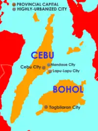 Central Visayas (Cebuano: Tunga-tungang Kabisay-an; Tagalog: Gitnang Kabisayaan or Filipino: Gitnang Visayas) is an administrative region in the Philippines, numerically designated as Region VII. With only two provinces: Cebu and Bohol, as well as three highly urbanized cities: Cebu City, Lapu-Lapu, and Mandaue, it has the fewest number of provinces out of any region in the country. Despite this, it is the most populous region in the Visayas, with a population of 6,545,603.