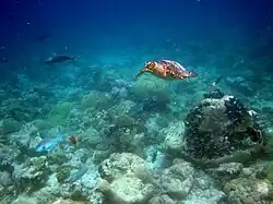 Environments of Chagos Archipelago provides rich biodiversity and support varieties of cetacean species within the vicinity,[32] such as three populations of blue whales[33] and toothed whales (such as sperm, pilot, orca, pseudo-orca, risso's and other dolphins such as spinners).[34] Regional extinct dugongs were historically seen in the archipelago, hence the Sea Cow Island was named due to the presences of the species.[35][36]