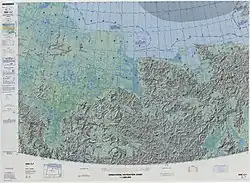 The district's territory stretches for 330 kilometers (210 mi) from north to south and for 290 kilometers (180 mi) from east to west.[8] Cape Shelagsky is its northernmost point.[8] Chaunsky District is significantly flatter than Bilibinsky District located to the west and contains large areas devoted to reindeer pasture.