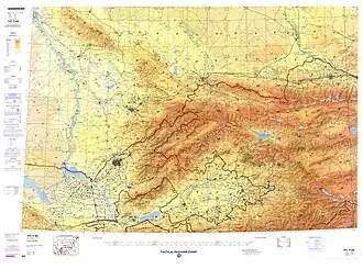 Map of the border (near Kashgar) including the tripoint with Tajikistan (International Map of the World, AMS, 1966)[a]