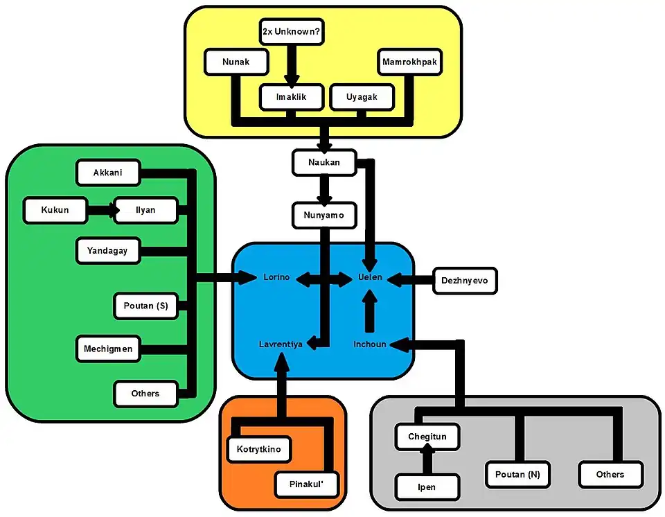 - ↑ The Indigenous Languages of the North: A Report on their Status Krauss, M., in Northern Minority Languages: Problems of Survival, Senri Ethnological Studies 44, p.6. (1997)