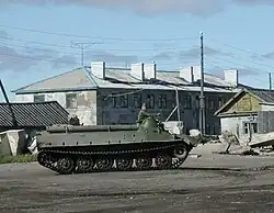 Also called Каӈисӄаӄ/Kaṇisqaq (Yupik; from каӈиӄ "bay") and Кэӈисӄун/Kėṇisqun (Chukchi),[20] old Chukchi Valkatlian, Enmytagin, and Mikhaylovsky throughout its history. During Soviet times, until its closure in 1951, Dezhnyovo was an important outpost of the Uelen state farm (linked by tractor transport). It was used as a border guard station until 1994. Several remaining cabins are occasionally used by hunting parties. The sheltered bay presents an excellent sea mammal hunting location.[18] The village was formed in 1902 around a trading post run by Olaf Svenson (North-East Siberia Co.) and the Karayev Brothers (Churin & Co.) until 1931, renamed 'Red Star' but closed 1951 with the population moved to Uelen.[22] |