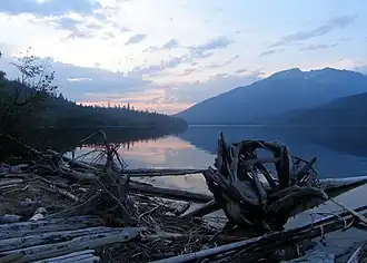 Clearwater Lake is one of six large lakes in Wells Gray Provincial Park in east-central British Columbia, Canada,.[2] The Clearwater River enters the lake at its north end, flowing from Hobson Lake and Azure Lake, and also drains the lake. There are several small streams that flow into Clearwater Lake, but it has no significant tributaries.[3]