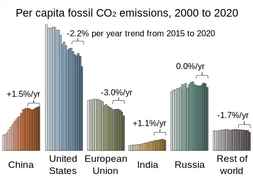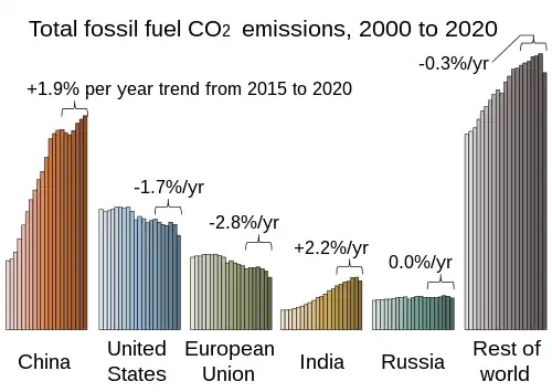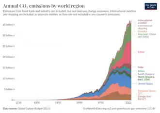 392. "Annual CO2 emissions by world region" (chart). ourworldindata.org. Our World in Data. Retrieved 18 September 2024.