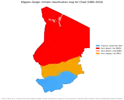 This article incorporates text from this source, which is in the public domain: Collelo, Thomas, ed. (1990). Chad: A Country Study (2nd ed.). Washington, D.C.: Federal Research Division, Library of Congress. pp. 35–42. ISBN 0-16-024770-5. - ↑ "World Weather Information Service–Faya-Largeau". World Meteorological Organization. Retrieved 24 June 2015.