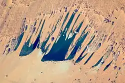 - ↑ Bristow, Charlie S.; Drake, Nick; Armitage, Simon (1 April 2009). "Deflation in the dustiest place on Earth: The Bodélé Depression, Chad". Geomorphology. Contemporary research in aeolian geomorphology. 105 (1): 50–58. Bibcode:2009Geomo.105...50B. doi:10.1016/j.geomorph.2007.12.014. ISSN 0169-555X.