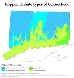 Climate change in Connecticut encompasses the effects of climate change, attributed to man-made increases in atmospheric carbon dioxide, in the U.S. state of Connecticut.[1]