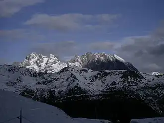 ![]() Monte Coglians (first high peak from the left) seen from Mt. Zoncolan (south) | |