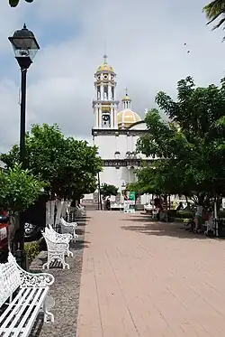 The city of Colima is the capital and gives the state its name. It is located in the north central part of the state, just south of the foothills of the Colima Volcano in the Valley of Colima. The city began as a Spanish settlement that was originally established further south in 1523 but moved to the current location in 1527. The capital remains the state's economic, political and cultural center.[22][23][24]