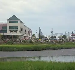Most of eastern Constable Hook was the 20th century Bayonne city dump, and now belongs to the Bayonne Golf Club, including a recreated lighthouse on the highest hill on the cape, serving as its clubhouse.[11] The north end has South Cove Commons, a late 20th-century shopping mall off Route 440, and a public shoreside nature walk east of there, affording views of tidal mudflats, the former Military Ocean Terminal at Bayonne, and New York Harbor. The Hudson River Waterfront Walkway runs along the northern shore of the cape. The Bayonne Energy Center opened in 2012.