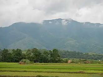 The Cordillera Central is the highest mountain range in the Philippines. It comprises about 1/6 of the whole Luzon island with a total area of 22,500 km2 (8,700 sq mi). The highest mountain in the range, Mount Pulag, is also the highest mountain in Luzon at 2,928 metres (9,606 ft).[1] It is officially the third highest mountain in the country after Mount Dulang-dulang and Mount Apo on Mindanao Island, the second largest island of the Philippines.
