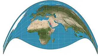 The Craig retroazimuthal map projection was created by James Ireland Craig in 1909. It is a modified cylindrical projection. As a retroazimuthal projection, it preserves directions from everywhere to one location of interest that is configured during construction of the projection. The projection is sometimes known as the Mecca projection because Craig, who had worked in Egypt as a cartographer, created it to help Muslims find their qibla. In such maps, Mecca is the configurable location of interest.[1]