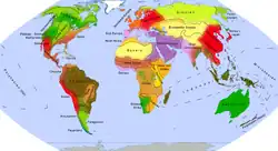 A precursor to the concept of culture areas originated with museum curators and ethnologists during the late 1800s as means of arranging exhibits, combined with the work of taxonomy. The American anthropologists Clark Wissler and Alfred Kroeber further developed this version of the concept on the premise that cultural areas represent longstanding cultural divisions.[4][5][6] This iteration of the concept is sometimes criticized as arbitrary, but the organization of human communities into cultural areas remains a common practice throughout the social sciences.[3]