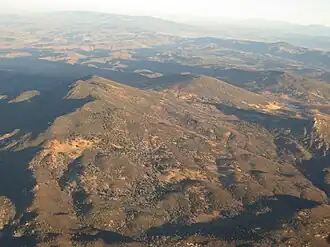 The range's highest peaks are Cuyamaca Peak at 6,512 feet (1,985 m), North Peak at 5,993 feet (1,827 m), Middle Peak at 5,883 feet (1,793 m), and Stonewall Peak at 5,700 feet (1,700 m).[3] The San Diego River and the Sweetwater River both have headwaters in the Cuyamacas. The Cuyamaca Reservoir lies adjacent to the east side of the range.