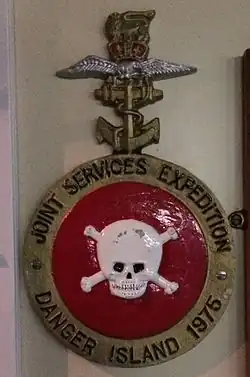 In 1975 there was an expedition to Danger Island by the Joint Services (JSDI). The expedition members were taken by RFA Resurgent to Eagle Islands and then by ketch and inflatable craft to Danger Island and to Three Brothers. The expedition made a topographical survey of the coral reef, an ecological survey of the corals on it and a study on the metabolism of the reef.[6] A reference collection of samples of the flora and fauna of the area was also undertaken.[7]