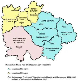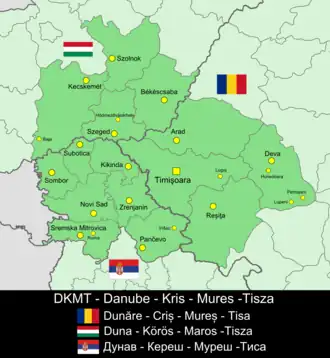The Danube–Criș–Mureș–Tisa Euroregion (DMKT; Romanian: Dunăre–Criș–Mureș–Tisa; Hungarian: Duna–Körös–Maros–Tisza; Serbian: Dunav–Kriš–Moriš–Tisa or Дунав–Криш–Мориш–Тиса) is a euroregion located in Hungary, Romania, and Serbia. It is named after four rivers: Danube, Criș, Mureș, and Tisa.
