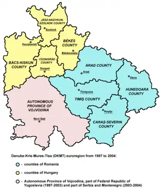 Originally established in 1997, the Danube–Criș–Mureș–Tisa euroregion consists of 8 member regions (formerly 9):