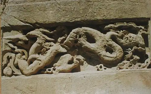 Dashkasan (Azerbaijani: Daşkəsən, Persian: داشکسن) is a three cave complex located south-east of Soltaniyeh.[1] Outside the caves there is a temple called Dragon Stone of Dash Kasan Caves which was built by order of Mongol king Öljaitü in the early fourteenth century. The temple was built by four Chinese craftsmen. The architecture of Dash Kasan caves looks like an incomplete rectangle.[2]