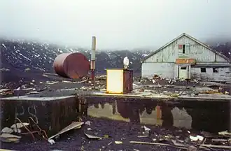 In early 1944, a party of men from Operation Tabarin, a British expedition, established a permanent scientific base named Station B.[30] This was occupied until 5 December 1967, when an eruption forced a temporary withdrawal. It was used again between 4 December 1968 and 23 February 1969, when further volcanic activity caused it to be abandoned.[25](p 291–292)