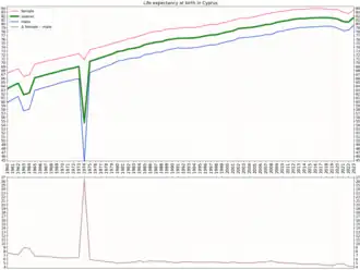 - ↑ Statistical Service of the Republic of Cyprus, DEMOGRAPHIC REPORT 2007 (p. 12)