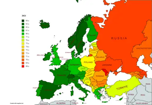 Europe's population growth is low, and its median age high. Most of Europe is in a mode of sub-replacement fertility, which means that each new(-born) generation is less populous than the one before.[3] Nonetheless, most West European countries still have growing populations, mainly due to immigration within Europe and from outside Europe and some due to increases in life expectancy and population momentum. Some current and past factors in European demography have included emigration, ethnic relations, economic immigration, a declining birth rate and an ageing population.