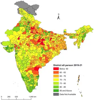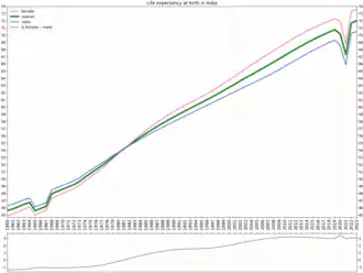 - ↑ Life expectancy at birth, total – India (Report). BMC Public Health. 2024. doi:10.1186/s12889-024-18278-3. PMC 11021017. PMID 38627658.