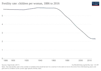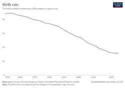 - ↑ "Birth rate in India, 1950 to 2023". Our World in Data. Global Change Data Lab. Retrieved 13 January 2025.