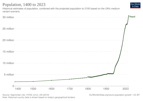 1. "Nepal's population is now 29,164,578". Archived from the original on 24 March 2023. Retrieved 24 March 2023.