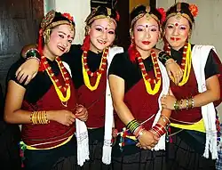 Nepal defines itself as a secular nation according to Constitution of Nepal[31] It is common for many Hindus in the country to also worship Buddhist deities simultaneously with Hindu traditions. The notion of religion in Nepal is more fluid than other countries, particularly Western countries.[32] The Nepali people build their social networks through their religious celebrations, which are a central part to the whole of communities within the country.[31]