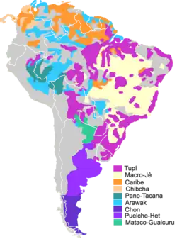 Main indigenous language families of South America (except Quechua, Aymaran, and Mapuche).