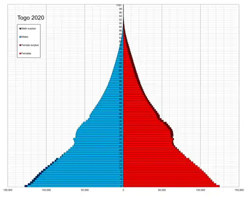 ![]() Population pyramid of Togo in 2020 | |