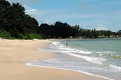 Desaru is a beach resort in Kota Tinggi District, Johor, Malaysia. It is famous for its pristine beach beside the South China Sea, and recently became a popular camping spot.