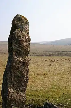 The principal geological components of Devon are i) the Devonian strata of north Devon and south west Devon (and extending into Cornwall); ii) the Culm Measures (north western Devon also extending into north Cornwall); and iii) the granite intrusion of Dartmoor in central Devon, part of the Cornubian batholith forming the 'spine' of the southwestern peninsula. There are blocks of Silurian and Ordovician rocks within Devonian strata on the south Devon coast but otherwise no pre-Devonian rocks on the Devon mainland. The metamorphic rocks of Eddystone are of presumed Precambrian age.[20]