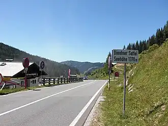 The Dienten Saddle (German: Dientner Sattel) is a mountain col at a height of 1,342 metres (4,403 ft)[1] in the Austrian federal state of Salzburg. The pass is open all-year round and traversed by the Hochkönig Road (B 164) that links Bischofshofen in the east with Saalfelden in the west. Between these two places there is also the Filzen Saddle.